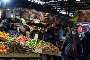 (250611) -- SANTIAGO, 11 junio, 2025 (Xinhua) -- Personas realizan compras en el mercado La Vega Central, en Santiago, capital...