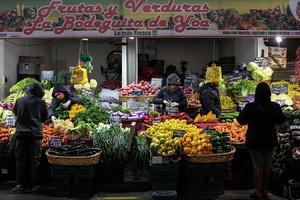 (250611) -- SANTIAGO, 11 junio, 2025 (Xinhua) -- Vendedores esperan por clientes en un puesto de verduras en el mercado...