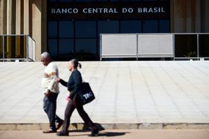 (250612) -- BRASILIA, 12 junio, 2025 (Xinhua) -- Una pareja camina frente a la sede del Banco Central de Brasil, en Brasilia, Brasil, el 12 de junio de 2025. (Xinhua/Lucio Tavora) (lt) (rtg) (ra) (vf)