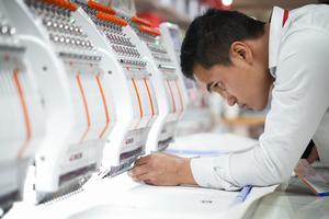 (250612) -- BOGOTA, 12 junio, 2025 (Xinhua) -- Imagen del 11 de junio de 2025 de un hombre operando maquinaria especializada durante la séptima edición de la feria textil Createx 2025, en la ciudad de Bogotá, capital de Colombia. Pese a la coyuntura comercial con Estados Unidos, después de que EE. UU. impusiera aranceles del 10 por ciento a las importaciones de Colombia, el sector textil colombiano apuesta por seguir creciendo mediante la innovación y generación de marca país para ganar competitividad, señalaron a Xinhua los organizadores de la feria textil Createx 2025. (Xinhua/Andrés Moreno) (am) (rtg) (ra) (vf)
