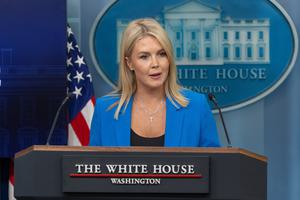 (250612) -- WASHINGTON, 12 junio, 2025 (Xinhua) -- Imagen del 11 de junio de 2025 de la secretaria de prensa de la Casa Blanca, Karoline Leavitt, hablando durante una conferencia de prensa en la Casa Blanca, en Washington, D.C., Estados Unidos. (Xinhua/Hu Yousong) (rtg) (ra) (ce)