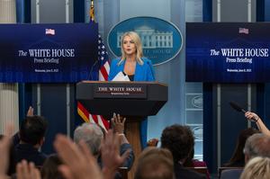 (250612) -- WASHINGTON, 12 junio, 2025 (Xinhua) -- Imagen del 11 de junio de 2025 de la secretaria de prensa de la Casa Blanca, Karoline Leavitt, hablando durante una conferencia de prensa en la Casa Blanca, en Washington, D.C., Estados Unidos. (Xinhua/Hu Yousong) (rtg) (ra) (ce)