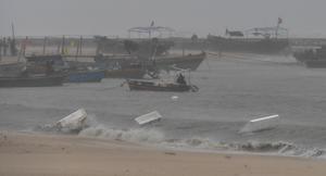 (250613) -- LEDONG, 13 junio, 2025 (Xinhua) -- Imagen del 13 de junio de 2025 de cajas de espuma flotando en el mar en el poblado de Yinggehai, en el distrito autónomo de la etnia li de Ledong, en la provincia de Hainan, en el sur de China. A medida que el tifón Wutip continuaba fortaleciéndose, el servicio meteorológico provincial mantuvo una alerta de tifón de nivel III hasta las 11:00 horas del viernes. (Xinhua/Yang Guanyu) (rtg) (ra) (vf)