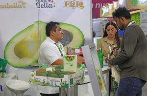 (250613) -- LIMA, 13 junio, 2025 (Xinhua) -- Un productor de paltas (i) atiende a clientes en un estand en...