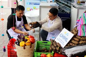 (250613) -- LIMA, 13 junio, 2025 (Xinhua) -- Vendedores despachan papas en un estand en el evento AgroFest 2025 en...
