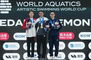 (250613) -- XI'AN, 13 junio, 2025 (Xinhua) -- El medallista de oro, Diego Villalobos Carrillo (c), de México, el medallista...