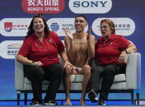 (250613) -- XI'AN, 13 junio, 2025 (Xinhua) -- Diego Villalobos Carrillo (c), de México, espera la puntuación después del evento...