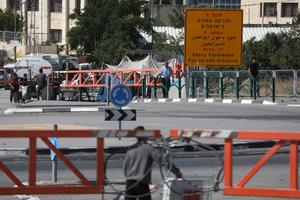 (250614) -- HEBRON, 14 junio, 2025 (Xinhua) -- Barreras viales son vistas instaladas en una entrada a Hebrón, en el...