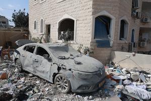 (250615) -- BAT YAM, 15 junio, 2025 (Xinhua) -- Imagen del 15 de junio de 2025 de un edificio dañado...