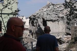 (250615) -- TAMRA, 15 junio, 2025 (Xinhua) -- Personas inspeccionan edificios dañados durante un ataque con misiles iraní, en Tamra,...