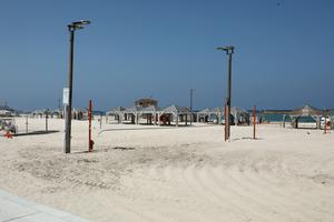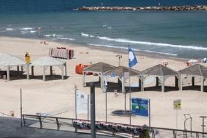 (250614) -- TEL AVIV, 14 junio, 2025 (Xinhua) -- Imagen del 13 de junio de 2025 de una playa vacía,...