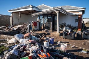 (250614) -- MTHATHA, 14 junio, 2025 (Xinhua) -- Imagen del 13 de junio de 2025 de una vivienda dañada por...