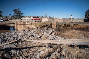 (250614) -- MTHATHA, 14 junio, 2025 (Xinhua) -- Imagen del 13 de junio de 2025 de un puente dañado por...