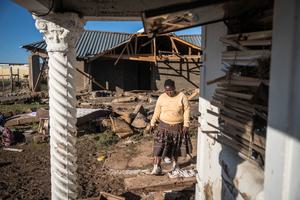 (250614) -- MTHATHA, 14 junio, 2025 (Xinhua) -- Imagen del 13 de junio de 2025 de una residente caminando hacia...