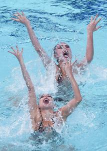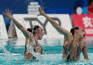 (250614) -- XI'AN, 14 junio, 2025 (Xinhua) -- Marla Fernanda Arellano Germes/Itzamary González Cuéllar, de México, compiten durante la final...