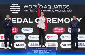 (250614) -- XI'AN, 14 junio, 2025 (Xinhua) -- El medallista de oro, Guo Muye (c), de China, el medallista de...