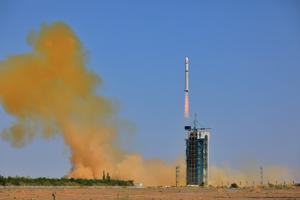 (250614) -- JIUQUAN, 14 junio, 2025 (Xinhua) -- Un cohete portador Gran Marcha-2D transportando el satélite Zhangheng 1-02, un satélite...