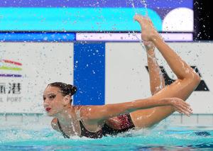 (250614) -- XI'AN, 14 junio, 2025 (Xinhua) -- Emily Melyssa Minante Avendaño, de Colombia, compite durante el evento de dúo...