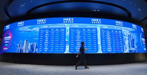 (250617) -- HONG KONG, 17 junio, 2025 (Xinhua) -- Imagen del 20 de mayo de 2025 de un hombre caminando junto a un panel electrónico en la Bolsa de Valores de Hong Kong, en Hong Kong, en el sur de China. Hong Kong escaló dos puestos para ocupar el tercer lugar en el Anuario de Competitividad Mundial 2025 publicado el martes por el Instituto Internacional para el Desarrollo Gerencial con sede en Suiza, marcando el regreso de la ciudad a los tres primeros puestos por primera vez desde 2019. (Xinhua/Chen Duo) (jg) (ra) (vf)