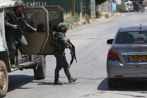 (250617) -- NAPLUSA, 17 junio, 2025 (Xinhua) -- Imagen del 16 de junio de 2025 de miembros de las fuerzas israelíes vistos durante una incursión israelí en el campamento de refugiados de Askar, en Naplusa, en el norte de Cisjordania. (Xinhua/Nidal Eshtayeh) (oa) (ra) (ce)