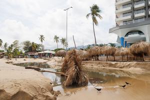 (250618) -- ACAPULCO, 18 junio, 2025 (Xinhua) -- Hombres recolectan arena en sacos previo a la llegada del huracán Erick,...
