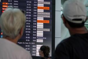 (250618) -- BALI, 18 junio, 2025 (Xinhua) -- Personas consultan la información de vuelos en el Aeropuerto Internacional I Gusti...