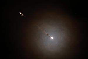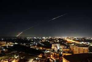 (250618) -- NAPLUSA, 18 junio, 2025 (Xinhua) -- Un rastro de misil es visto desde la ciudad de Naplusa, en...