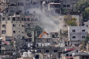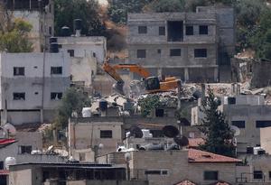 (250618) -- JENIN, 18 junio, 2025 (Xinhua) -- Imagen del 17 de junio de 2025 de una excavadora israelí demoliendo...