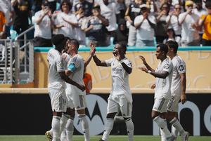 (250619) -- MIAMI, 19 junio, 2025 (Xinhua) -- Imagen del 18 de junio de 2025 de jugadores de Real Madrid...