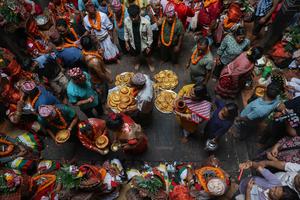 (250619) -- BHAKTAPUR, 19 junio, 2025 (Xinhua) -- Imagen del 18 de junio de 2025 de personas reuniéndose para una...