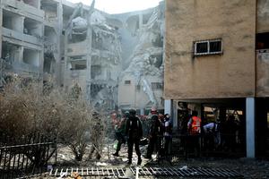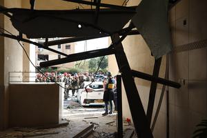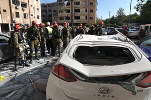 (250619) -- HOLON, 19 junio, 2025 (Xinhua) -- Fuerzas de seguridad y rescate israelíes trabajan en la escena de un...