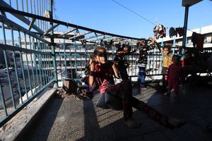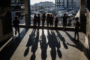 (250621) -- GAZA, 21 junio, 2025 (Xinhua) -- Imagen del 20 de junio de 2025 de niños palestinos desplazados vistos...
