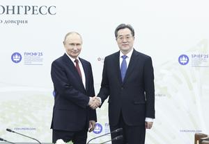 (250621) -- SAN PETERSBURGO, 21 junio, 2025 (Xinhua) -- El vice primer ministro chino, Ding Xuexiang, también miembro del Comité...