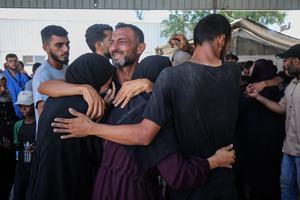 (250620) -- CIUDAD DE GAZA, 20 junio, 2025 (Xinhua) -- Palestinos se lamentan por las víctimas asesinadas en un ataque...