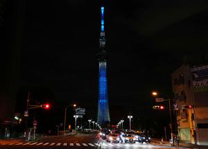 (250620) -- TOKIO, 20 junio, 2025 (Xinhua) -- El Tokyo Skytree se ilumina de azul para conmemorar el Día Mundial...