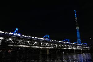 (250620) -- TOKIO, 20 junio, 2025 (Xinhua) -- El Tokyo Skytree y el Puente Ferroviario del Río Sumida se iluminan...