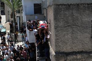 (250620) -- HEBRÓN, 20 junio, 2025 (Xinhua) -- Residentes locales asisten al funeral de Mohammed Ahmed Mahmoud al-Hur, de 48...