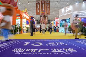 (250620) -- KUNMING, 20 junio, 2025 (Xinhua) -- Personas visitan en el Pabellón de la Industria del Café en la...