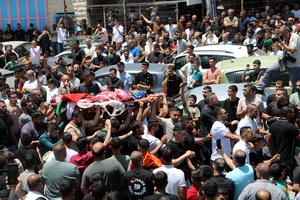 (250620) -- HEBRÓN, 20 junio, 2025 (Xinhua) -- Residentes locales asisten al funeral de Mohammed Ahmed Mahmoud al-Hur, de 48...