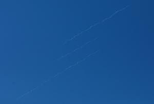 (250620) -- NAPLUSA, 20 junio, 2025 (Xinhua) -- Rastros de misiles son vistos desde la ciudad de Naplusa, en el...
