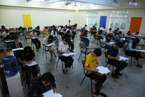 (250622) -- YANGON, 22 junio, 2025 (Xinhua) -- Estudiantes toman la Hanyu Shuiping Kaoshi (HSK), o la prueba estandarizada de...