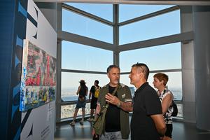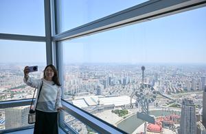 (250622) -- TIANJIN, 22 junio, 2025 (Xinhua) -- Extranjeros visitan la sala turística "La Cumbre de Tianjin" del Centro Financiero...