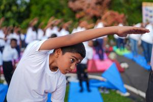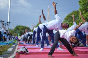 (250621) -- COLOMBO, 21 junio, 2025 (Xinhua) -- Personas participan en una sesión masiva de yoga en el Día Internacional...