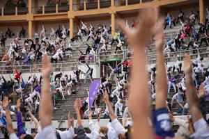 (250621) -- BOGOTÁ, 21 junio, 2025 (Xinhua) -- Personas participan en una sesión de yoga durante la celebración del Día...