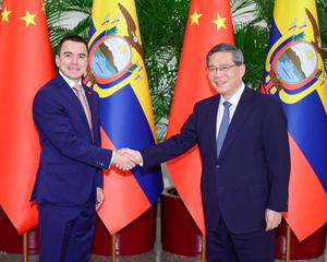 (250624) -- BEIJING, 24 junio, 2025 (Xinhua) -- El primer ministro chino, Li Qiang, se reúne con el presidente ecuatoriano,...