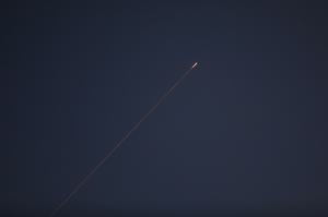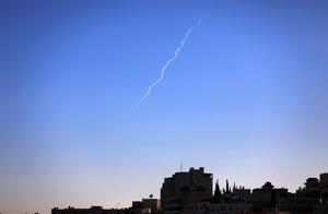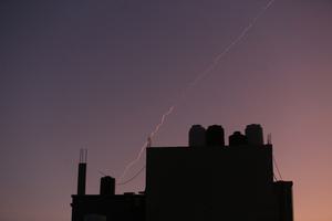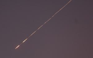(250624) -- HEBRON, 24 junio, 2025 (Xinhua) -- Un rastro de misil es visto desde la ciudad de Hebrón, en...
