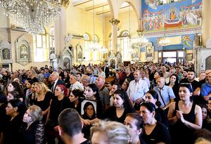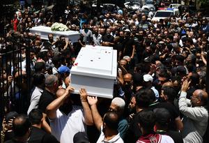(250624) -- DAMASCO, 24 junio, 2025 (Xinhua) -- Personas asisten al funeral por las víctimas de un ataque a una...
