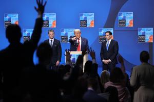 (250625) -- LA HAYA, 25 junio, 2025 (Xinhua) -- El presidente de Estados Unidos, Donald Trump (c), asiste a una...