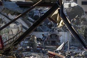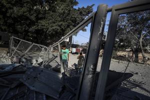 (250626) -- GAZA, 26 junio, 2025 (Xinhua) -- Un palestino inspecciona el daño después de un ataque aéreo israelí, en...