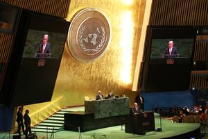 (250626) -- NACIONES UNIDAS, 26 junio, 2025 (Xinhua) -- El secretario general de la ONU, António Guterres, habla durante un...